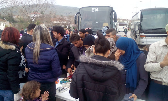 Πάνω απο 15 λεωφορεία με μετανάστες βρέθηκαν σήμερα στο Ν Μοναστήρι, μετά τον αποκλεισμό τους απο τα σύνορα των Σκοπίων και απο την αναλγησία της κυβέρνησης και της Ευρωπαικής Ένωσης. Διωγμένοι από την Αθήνα μεταφέρονται απο πόλη σε πόλη ταλαιπωρημένοι απο την οδύσσεια τους , ψάχνοντας τρόπο να φθάσουν στην γή της επαγγελίας....την Γερμανία!!!Με πρωτοβουλία του πρόεδρου του ΔΣ Δήμου Δομοκού κ Καλημέρη Νικόλαο , του Ιερέα του Αγίου Παντελεήμονα Εκκάρας π Ηλία Ζέρβα, του Επιμορφωτικού Συλλόγου Ν Μοναστηρίου με τον πρόεδρο του Αντώνιο Βουλκούδη αλλά και μέλη του, και τον Σύλλογο Γυναικών Ν Μοναστηρίου με την πρόεδρο του Γκανίδου Παγώνα, μοιράστηκαν πάνω απο 1000 μερίδες φαγητού, 3000 κιλά πορτοκάλια, αυγά, ρουχισμός για παιδιά και μεγάλους.